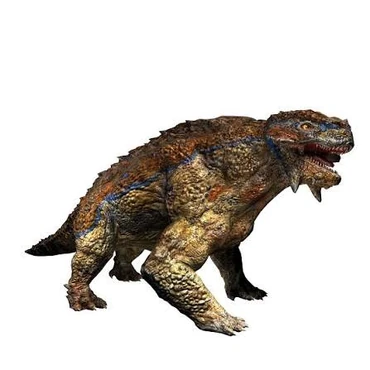 The Anthracosuchus jumps up and starts shaking it's head like a mad man