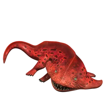 An Anthracosuchus swims away from the Snake and goes onto land to sunbathe.