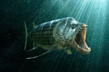 Next up, we have our first remake. Big Duncan is a massive Dunkleosteus Malleocranium, measuring at 36 feet in length, 7 feet in height, and weighs 6 tons. His species name means "Dunke's Bone Hammer Skull". Big Duncan's story is unique in that he wasn't originally from Monster Cove. He was from a park called "Deep Scares", where he was the biggest animal in the park. But the park wasn't exactly the best when it came to managing the animals. In fact, it got to the point that a lot of the animals started dying, and soon enough, the park became smaller to better make Big Duncan the selling point. But one day, he snapped. He started ramming the glass of his enclosure, trying to break out, but then, the people of ScopeSea, the people who own Monster Cove, found out about Big Duncan's situation and sued Deep Scares for it's mistreatment of it's animals. After that, ScopeSea moved Big Duncan to Monster Cove. At first, he wasn't happy with being put into another cage, but then, he noticed that he wasn't just being fed small fish, no, he was being fed large chunks of meat, the kind of meat that his kind need to sustain themsleves. This led to Big Duncan becoming more laid back because he realized that people in Monster Cove actually do care about him, so his anger faded away until there was nothing left. These days, Big Duncan, despite his intimidating appearance, is well-loved by guests, and especially children because of how friendly he is. He even does something a fish shouldn't be able to do, he often winks at the guests, making them question things. But he knows they're confused and loves to play along with the mystery. His exhibit is called "Abyssal Encounter", because unlike a lot of the other exhibits, this one is set in a cave-like setting. Because in the wild, this Dunkleosteus species is mainly a night hunter and they prefer darker areas. He has far more armor than the Dunkleosteus of the Devonian, and his head is structured in a way where it can be used as a battering ram, and his lower jaw is also bulkier to enhance his bite power. In this universe, the reason why Dunkleosteus doesn't look like a massive goldfish, is because in the Devonian, well, they actually did look like the modern reconstruction of Dunkleosteus. But over the years, they started facing more challenges, especially from sharks, so they evolved a longer body for faster travel. So yeah, I actually have a reason as to why Dunkleosteus looks the way it does in this universe. It's convergent evolution, they're trying to copy sharks.