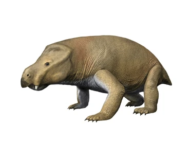 The Redondasaurus jump out at attack the Placerias scatter and trample a male.