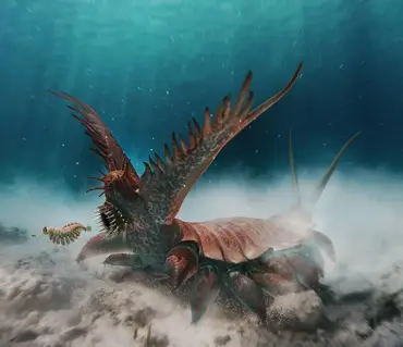 Anteosaurus strikes Moschops from behind, brutally ripping his abdomen open. Everyone else watches in stunned disbelief.