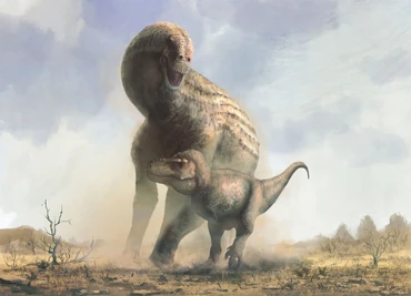 Capitalsaurus manages to tear his fist out of the ground and raises it threateningly towards the sky.