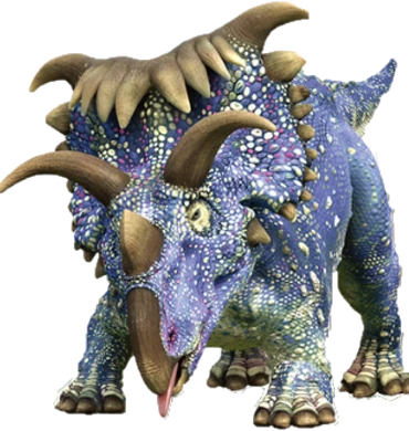 I adore the coloration of Kosmo, blue with white and purple works so well! The face and shape are spot on as well. With that said, I don’t understand nor appreciate the rocky skin and osteoderms. But I can overlook that, one of my favorite herbivore designs from this show.