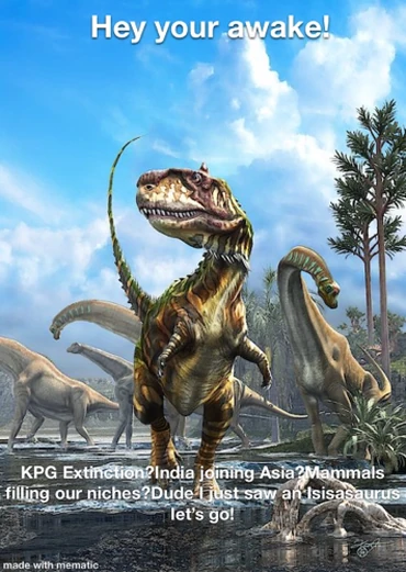 The ash clears and they meet each other,but T-Rex was charging up a giant laser,it seems like the end but Olorotitan uses all of his power to burst through the laser and slam into T-Rex they then go through the sea until the reach the core,a giant explosion happens near Madagascar and all the fauna there dies.Olorotitan was burning up and knew he had to end T-Rex,the last of his kind,and slams him into the ground at terminal velocity,T-Rex is no more,as the song ends Olorotitan succumbs to the Fire and dies,all the animals salute this great Russian Hero.Humans never evolved,Dinosaurs lived until the end of time.