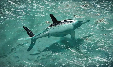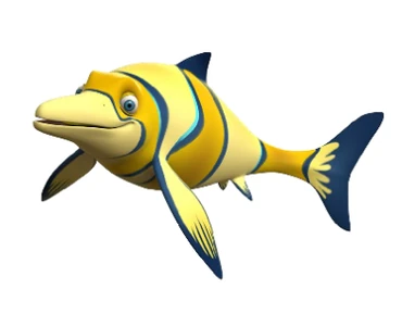 First up, we have the main animal protagonist of the story, Donya, a Dolichorhynchops Aqusaltator. She is 4 feet tall, 17 feet long, and 1,200 pounds. Her species name means "Long-nosed Face Water Dancer". She's a little bulkier than a Cretaceous Dolichorhynchops, she has spiked brows, a sharp tail fluke, and spikes in the front of her fins, mainly used for ramming and stunning prey, she also has markings that look like flower petals. Donya was found at sea when a group of poachers were attacking her and her mother. Fortunately, Dr. Gi-wo Hun, a Korean marine biologist who specialized in marine reptiles, and his daughter, Su-yen, along with the coastguard, found the ship the poachers were on and boarded them. Unfortunately, Donya's mother died from blood loss because she was speared in the back. From then on, Su adopted Donya and has been taking care of her since. At Monster Cove, Donya's exhibit is called "Dolly Dimension", which is a live show where she and Su do performances. Because of how she was raised, Donya is very fond of people, almost acting like a pet. But her bond with Su is very strong, so strong in fact, that at one point, when the park was hacked and the animals started rampaging across the park, Donya saved Su from being killed by the park's flagship, Apollo the Unbelievable, a massive Prognathodon. She even helped Su and her father lure Apollo back to his enclosure.