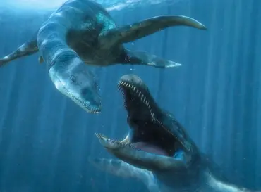 Fossils and Archaeology Stegosaurus runs from Flying Stegosaurus before being killed by Most Grotesque Animal. The two look at each other.