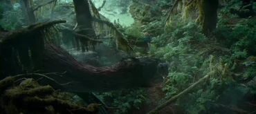 Melony and a Rhinorex eat popcorn while Calem and Serena are slaughtering hundreds of Struthiomimus younglings