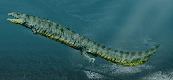 In addition to arthropods, many semi-aquatic tetrapods lived in the swamps. Despite the fact that many of them moved well on land, they needed the proximity of water to reproduce. Various temnospondyls (Dendrerpeton, Procochleosaurus), microsaurs (Lepterpeton, Archerpeton), baphetids (Loxomma, Megalocephalus) and nectrideans (Urocordylus, Batrachiderpeton, Keraterpeton) lived in Bashkirian swamps. Some amphibians reached huge sizes, such as Pholiderpeton with a length of over 4 m. Despite the accepted name, not all of these animals are the ancestors of modern frogs, newts and caecilians. Some prehistoric "amphibians", however, acquired external resemblance to them. Phlegethontia has lost its hind limbs, and Ophiderpeton has lost both its hind and forelimbs, becoming caecilian-like. The most important event of this age was the appearance of terrestrial tetrapods, which laid eggs immediately on land, in a safe place. The oldest sauropsids (Hylonomus) and synapsids (Asaphestera, Protoclepsydrops) are known from the Bashkirian Joggins Formation of Nova Scotia, Canada. Millions of years later, reptiles and birds subsequently evolved from sauropsids, while mammals are descendants of early synapsids.