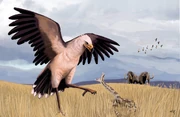 In life, B. daggetti is thought to have resembled the related savanna hawk, another bird of the genus Buteogallus. It had long legs, hence the nickname “walking eagle”. These long legs were possibly used to hunt small reptiles, like the secretary bird, while using them to hunt animals as large as ostriches. However, compared to the modern Savannah Hawk, it is some 40% larger.