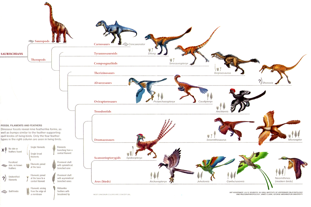 Coelurosauria /sɨˌljʊərəˈsɔriə/ (from Greek, meaning "hollow tailed lizards") is the clade containing all theropod dinosaurs more closely related to birds than to carnosaurs. In the past, it was used to refer to all small theropods, although this classification has been abolished. Nonetheless, it is still a diverse group that includes compsognathids, tyrannosaurs, ornithomimosaurs, and maniraptorans; Maniraptora includes birds, the only dinosaur descendants alive today. Most feathered dinosaurs discovered so far have been coelurosaurs; Philip J. Currie considers it probable that all coelurosaurs were feathered.