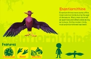 Enantiornithines (meaning opposite birds) were a large group of birds that lived during the Mesozoic era. Some were as big as hawks and others were as small as sparrows. Unlike birds today most of them had teeth.
