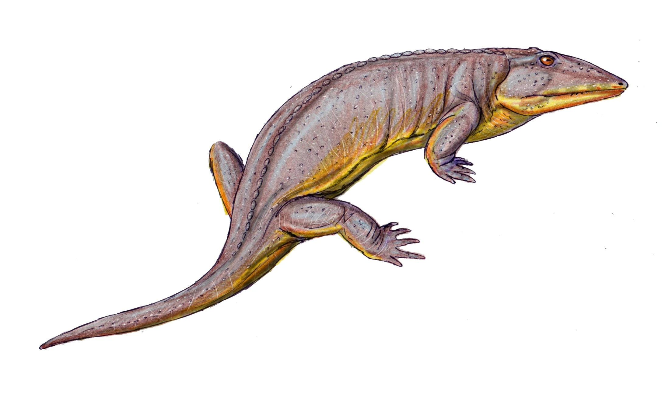 Temnospondyls survived extinction in several continental bodies of water in high latitudes. Wetlugasaurus, Selenocara, Samarabatrachus, Luzocephalus, Benthosuchus, Tupilakosaurus and other temnospondyls inhabited rivers and lakes of northern Pangea. Similar to crocodiles, these amphibians probably led a similar lifestyle, ambushing animals that came to drink. Aphaneramma, a trematosaurid, probably lived in the seas. Keratobrachyops, probably the oldest known chigutisaurid temnospondyl, has been discovered in Induan Arcadia Formation of Queensland, Australia. Chroniosuchians (Axitectum, Dromotectum) also survived into Triassic. Having thicker skin, these amphibious predators could spend more time on land.