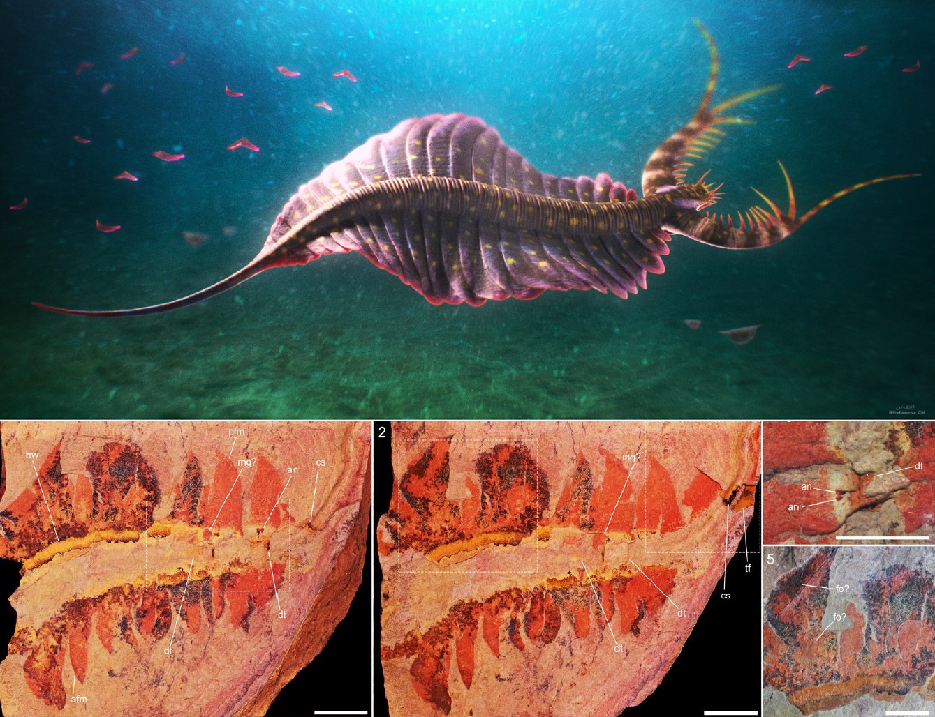 Lobopodians are an iconic group of animals from the Paleozoic that includes Hallucigenia and Opabinia, as well as living animals such as tardigrades and velvet worms. They would also eventually give rise to the first arthropods by developing a hard, sclerotized exoskeleton. During the Cambrian, a rare subset of lobopodians possessed large swimming flaps, sometimes alongside ventral walking limbs.