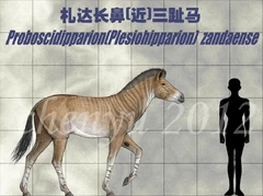 Proboscidipparion is an extinct genus of horse that lived in Eurasia in the Pliocene, 7.1-4 years ago. It likely had a proboscis(hence the name) like modern day tapirs due to the elongated skull of this horse. Fossils have been found throughout Eurasia, from England to China.