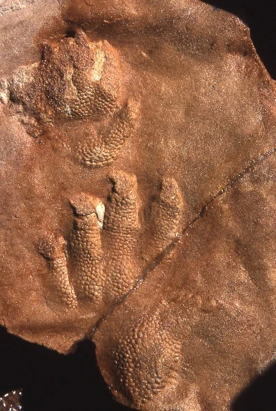 | Prortochirotherium holotype trace fossil, displayed in Regionalmuseum Wolfhagen | |