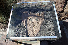The skull on Rhinesuchus had a flat triangular shape with blunt snout similar to some of the other large amphibians and had a palate filled with small sharp teeth suggesting that it hunted fish. Also, the small eyes were on top of the head suggesting that it approached its prey from below.