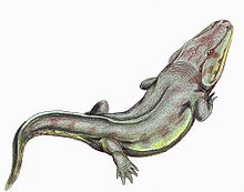 | An artist's illustration of Rhinesuchus | |