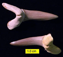 Scapanorhynchus lewisii (meaning "spade snout") is an extinct genus of shark that lived in the early Cretaceous through the Miocene periods.