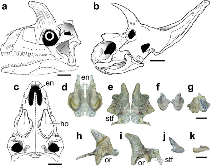 Reconstruction of the skull compared to that of Arrhinoceratops