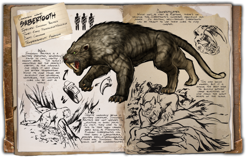 - Smilodon appears in ARK: Survival Evolved under 'Sabretooth'.