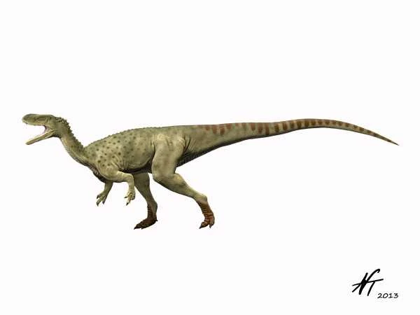 Spinostropheus (meaning spine vertebrae) is a Primitive Ceratosaur from early Cretaceous Niger. It was about 20.3 ft (6.2m) and was lion-sized. Originally considered a late species of Elaphrosaurus.