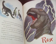- The Tyrannosaurus itself. It has long arms, having a more vertical stance, and a square head. This was because Walt Disney himself wanted it to look scary.