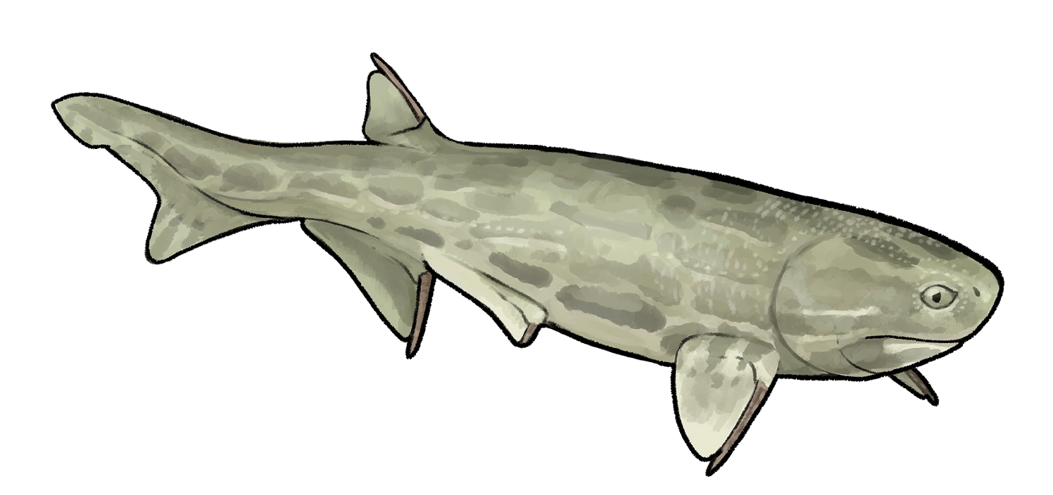 Cartilaginous fishes remained largely untouched by extinctions and continued to spread across the planet. Psammodus lived near the seabed. Long-bodied, eel-like Thrinacodus and Listracanthus probably hunted by attacking from the seaweed thickets. Homalacanthus, Acanthodes and Carycinacanthus lived in coastal zone. Marine bony fishes of the Tournaisian include palaeonisciforms (Grassator, Cycloptychius, Holurus), gyrolepidotids (Gyrolepidotus), elonichthyiforms (Elonichthys) and rhizodontiforms (Rhizodus). Non-tetrapodomorph lobe-finned fishes like Greiserolepis and Medoevia lived in seas and lagoons. Semiaquatic tetrapodomorphs from the Tournaisian were not discovered for a long time, and their absence from the fossil record was called the "Romer's gap". However, since 2015, several stem-tetrapods and true tetrapods of the families Acanthostegidae, Tulerpetontidae, Crassigyrinidae and Whatcheeriidae were found in the Tournaisian sediments of Horton Bluff Formation in Nova Scotia, Canada. All of them as well as Avonichthys, a ray-finned fish, lived in river deltas.
