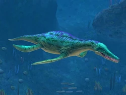 Trinacromerum was 3 meters long. Its teeth show that it fed on small fish.