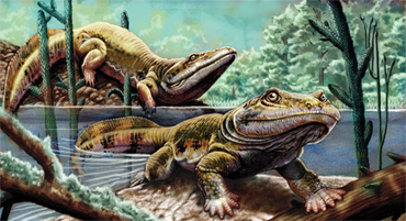During the Late Devonian, the active evolution of fish continued. Large filter feeders like Titanichthys and predators like Dinichthys and Dunkleosteus appeared among the armored fish (placoderms). The number and diversity of cartilaginous fish like Cladoselache increased. Very important events took place on the shores of fresh water bodies, where numerous ancestors of tetrapods already lived. These animals include Ichthyostega, Acanthostega, Tulerpeton, Ventastega and Hynerpeton. Lush forests in equatorial latitudes created ideal conditions for the life of early amphibians, which could move further and further from the water. The diversity of terrestrial arthropods also increased, although their fossils are extremely rare.