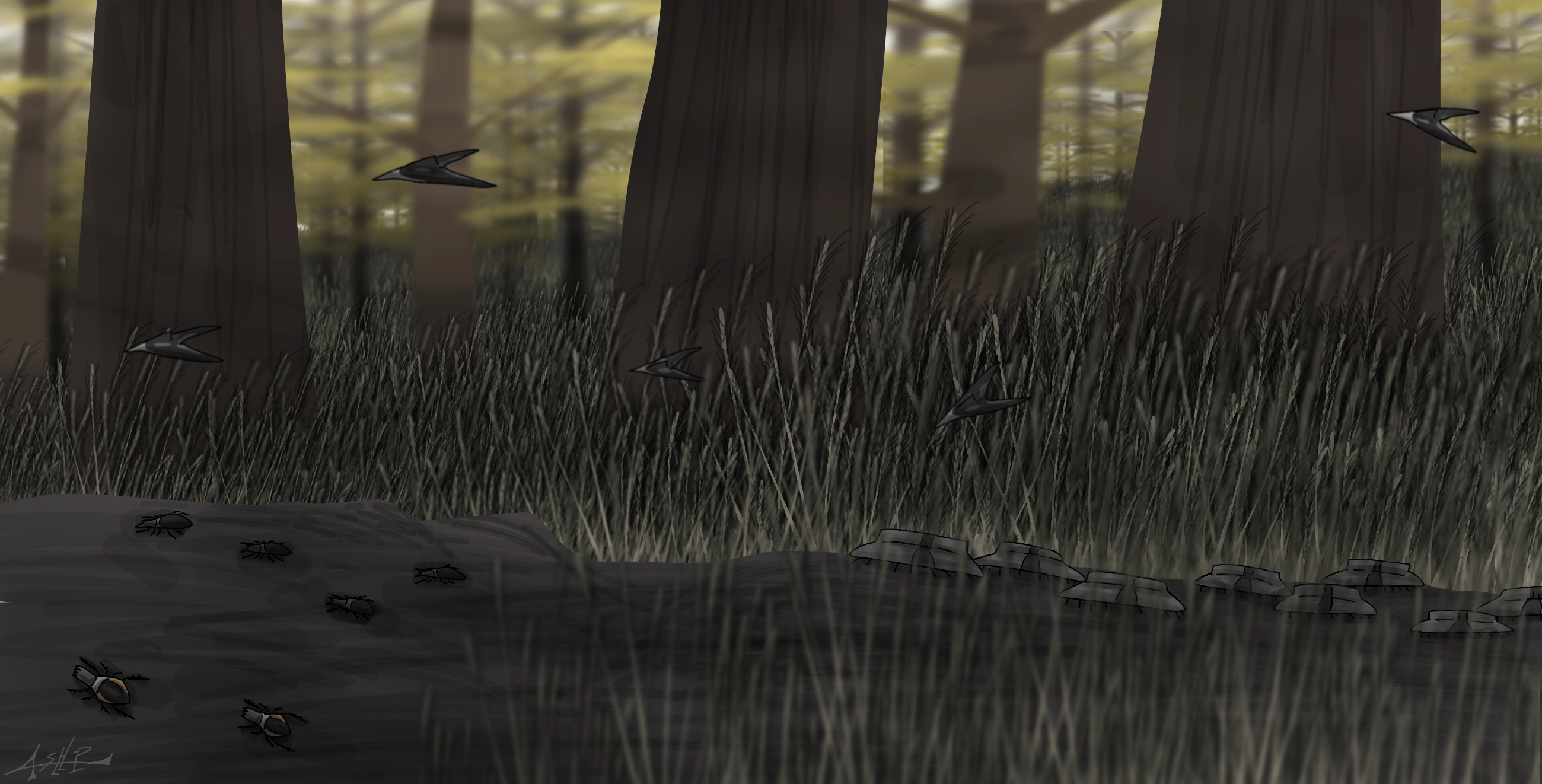 the Euripidevastus make up this entire area, given how close they grow naturally to eachother something similar to earth's grass, and also their color which was something of a yellowish grey.
