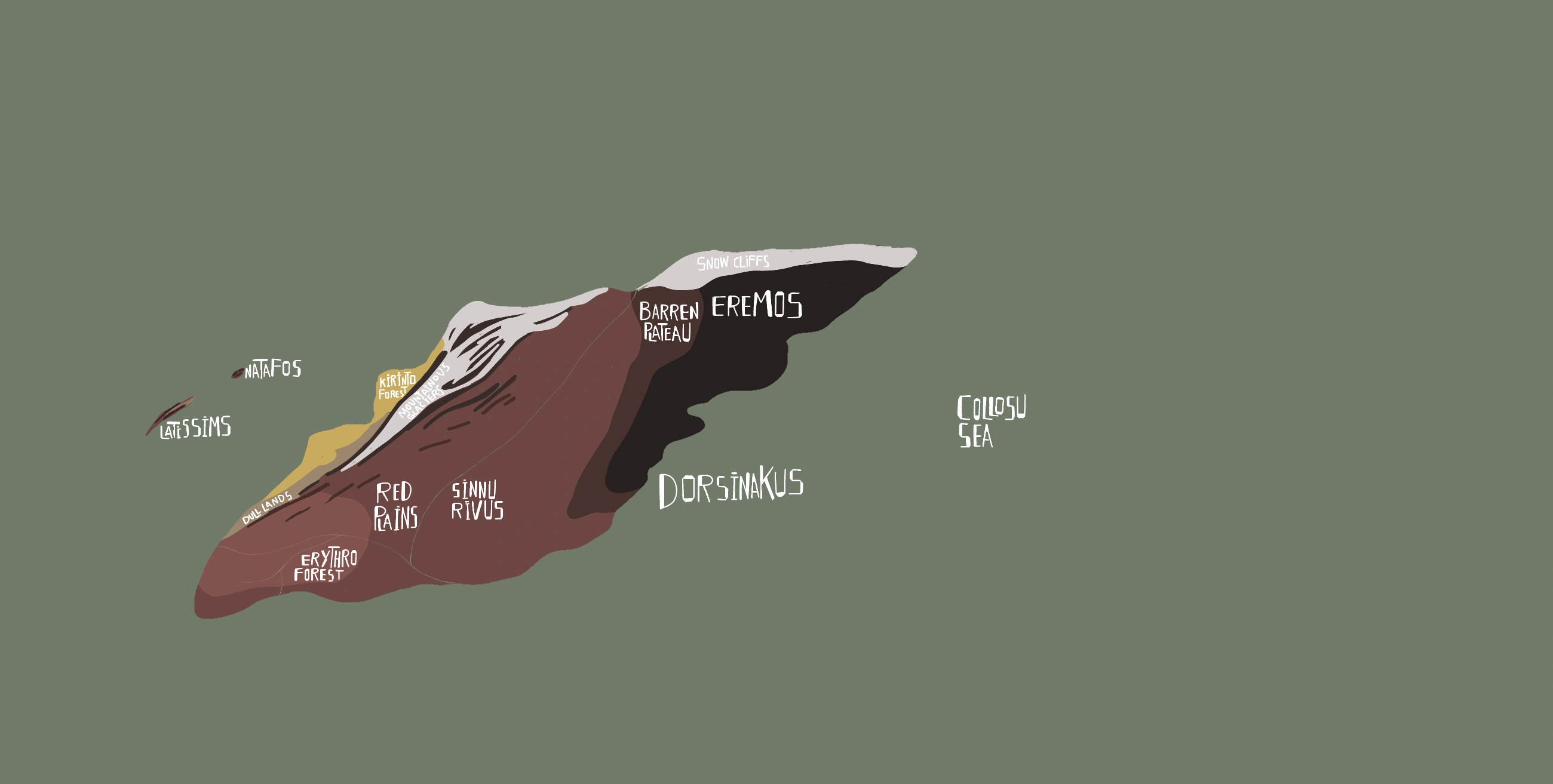 the larger of Zygroz's two islands, with rocky coast and arid grasslands, home to the largest Zygrozian animal, the Decorusagigas there are various strange "plants" from there like Vellumiskhos, Proceritabulbus, Herbegrames and Insolitophytes.