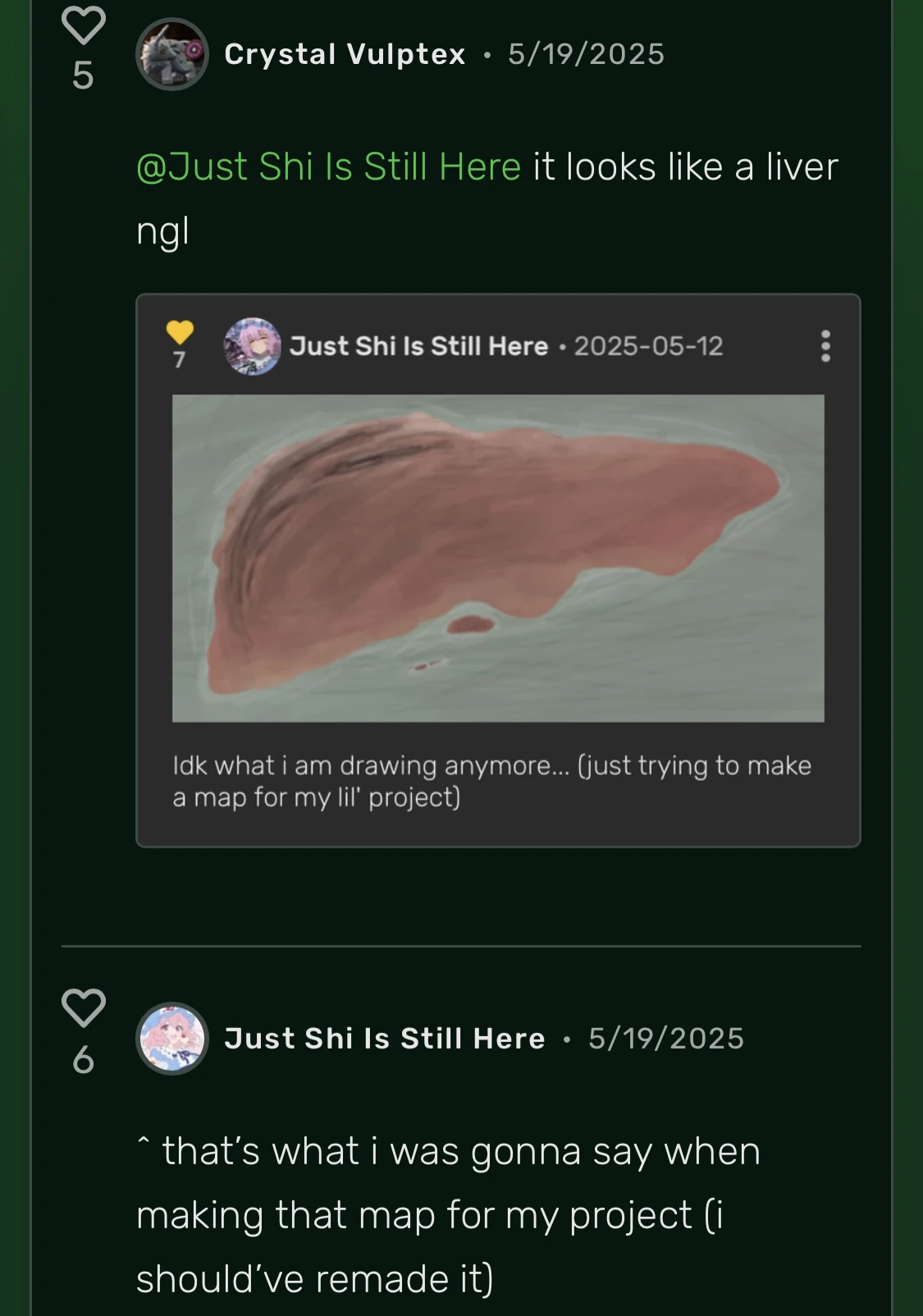 - Yamato updated the map of the titular fictional exoplanet itself twice. one user even commented saying that Yamato's first attempt on the map (now outdated odviously) looks like a liver, even Yamato herself thinks of this.[1]