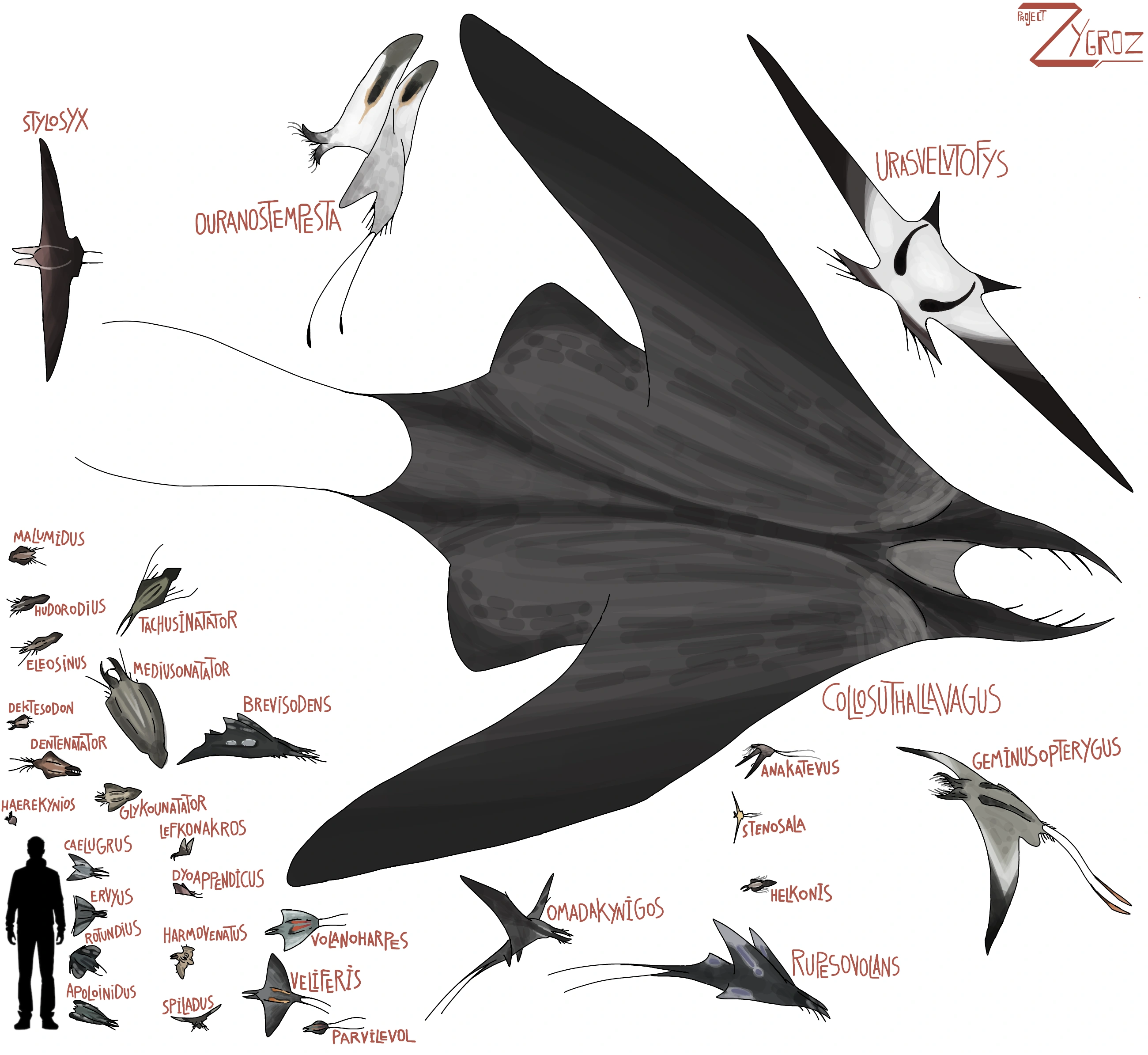 - Project Zygroz's biggest inspirations are C. M. Kosemen's Snaiad and Wayne barlowe's Darwin IV as stated by Shi (who is now Yamato-Shi, or simply Yamato) on her message wall.