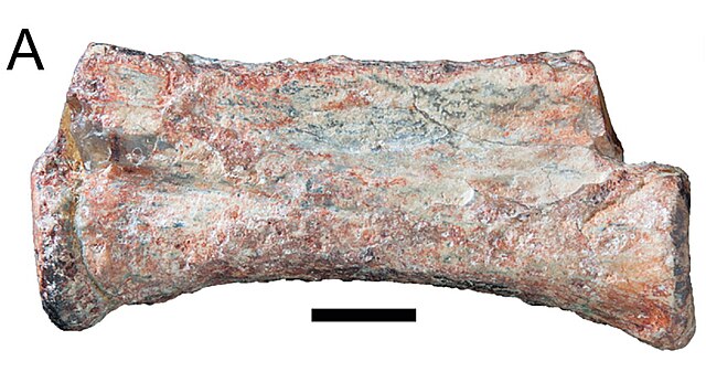 The holotype, BMNH R3717, was found in the Albian-age Lower Cretaceous Griman Creek Formation. It consists of a 63 millimetres (2.5 inches) long incomplete amphicoelous (concave surfaces for articulation on the anterior and posterior faces) caudal vertebral centrum. For unknown reasons, he believed it had elongate prezygapophyses. He also suggested that if more material was known, it could prove to be synonymous with other Lightning Ridge “coelurosaurs” (i.e. Rapator; coelurosaur in the outdated sense of any small theropod).